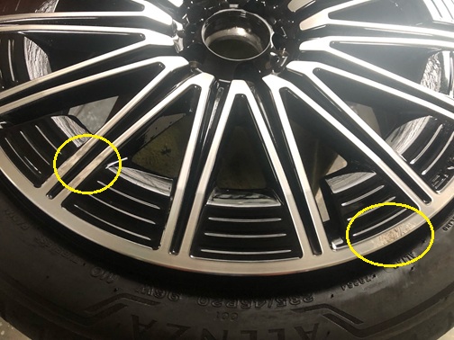 ダイヤカットのホイールですね。2か所に傷があります。