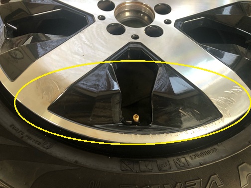 ダイヤカットのホイールですね。少し広い範囲で傷がついています。