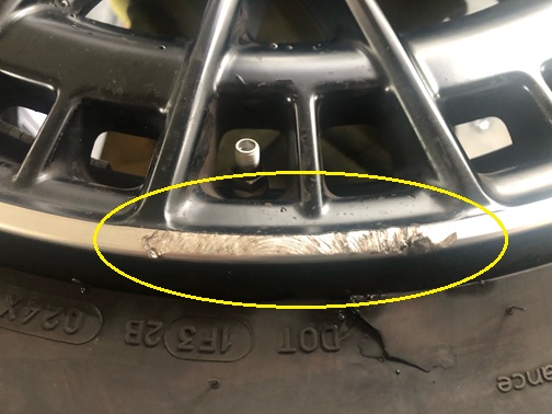ダイヤカットのホイールですね。傷が深いですね。